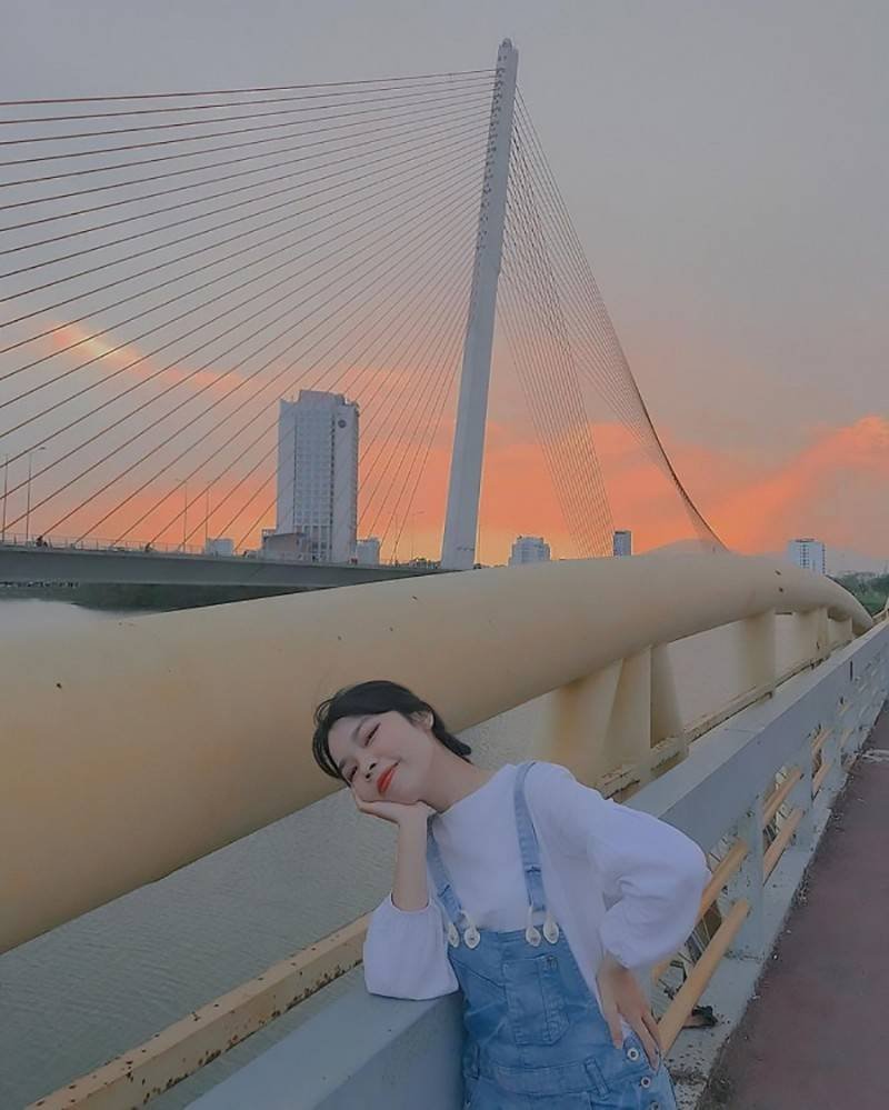 Cầu đi bộ, view sông Hàn, nơi nhiều bạn trẻ check-in khi trời ngả hoàng hôn.