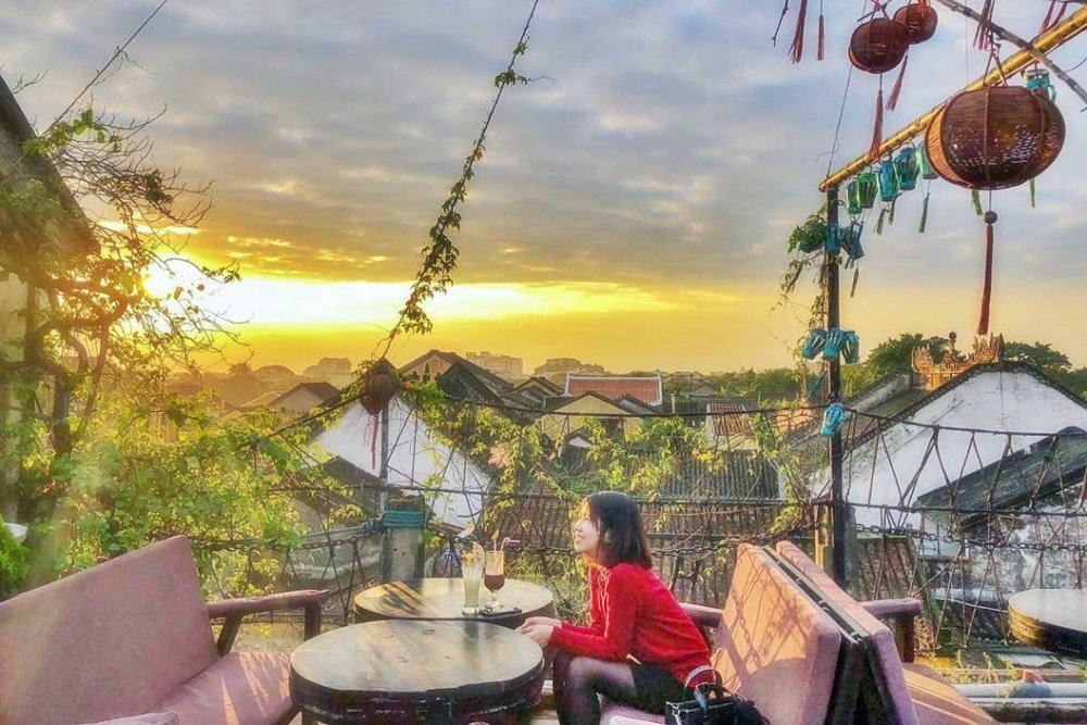 Vị trí cao, decor đẹp, view bao quát phố cổ. Khi hoàng hôn tắt, ánh đèn trời, đèn phố và ánh sáng quán lên làm nên cảnh rất đẹp — nếu bạn biết chỉnh khẩu độ, ISO hợp lý. -
